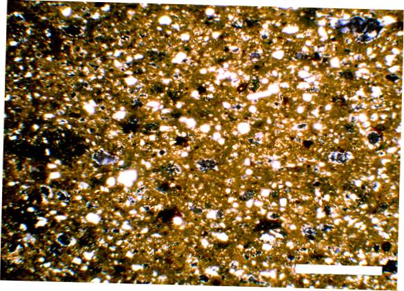 Light yellowish clay, hard but a little bit flaky to the touch, with some visible inclusions of big size and whitish-yellow colour, medium greyish and some smaller of white colour |