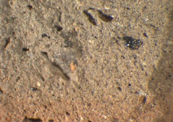 infrequent, subrounded, spherical, reddish brown;reddish brown, 0.025-0.125 |