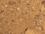 frequent, well rounded, spherical, white, 0.8-0.2 |