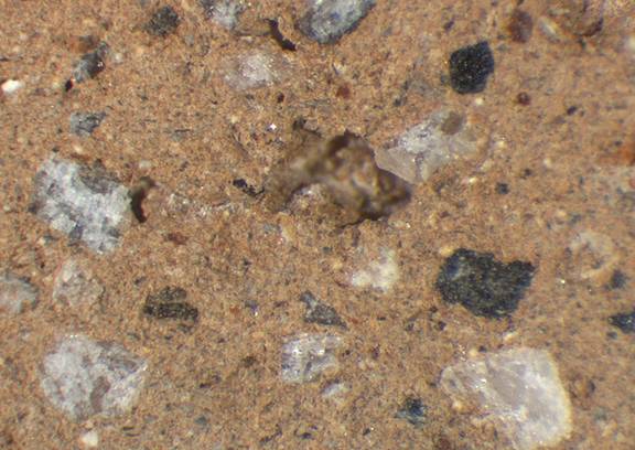 reddish yellow, irregular; coarse temper, many medium-sized to large gray, white and red inclusions, mica |