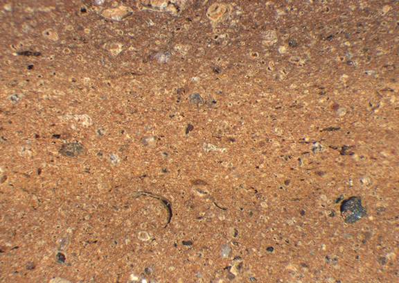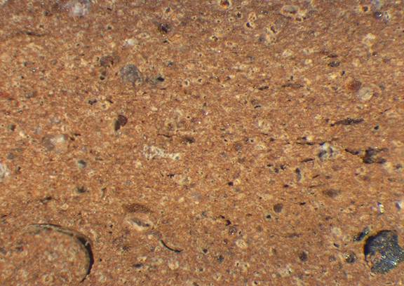 light reddish brown, granular; fine to medium-sized white, some red and black inclusions |
