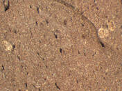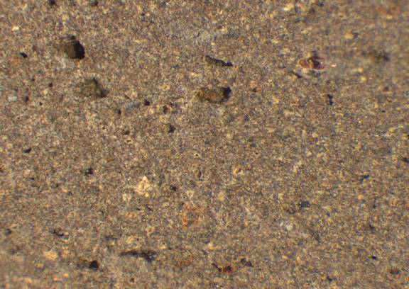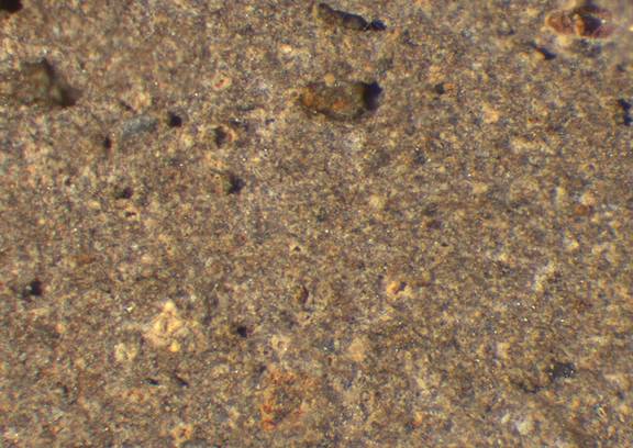 yellowish brown, granular; some fine to large white, reddish brown and black inclusions |
