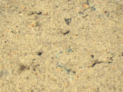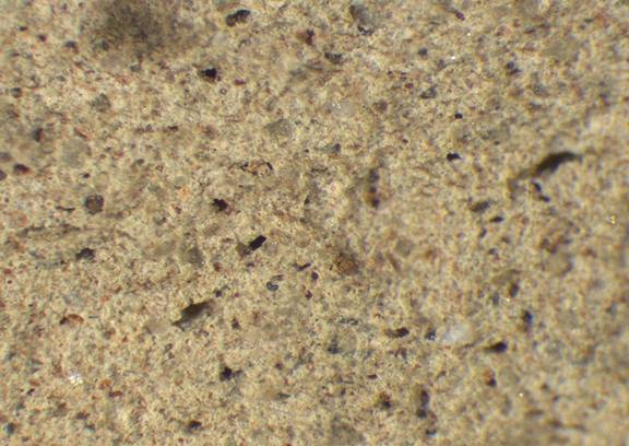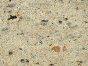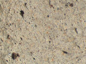 pale yellow, fine; few large darkbrown inclusions, less mica |