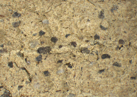riddled with, well rounded, spherical, white, 0.02-0.04 |