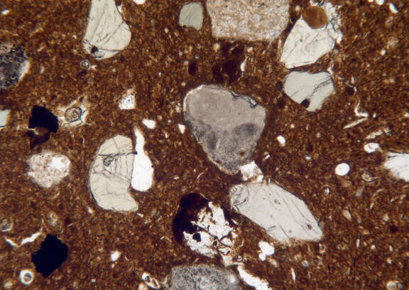 infrequent, subrounded, subspherical, rust coloured, 0.025-0.5 |