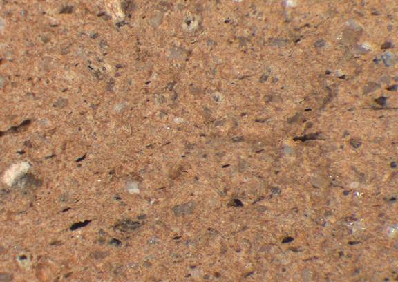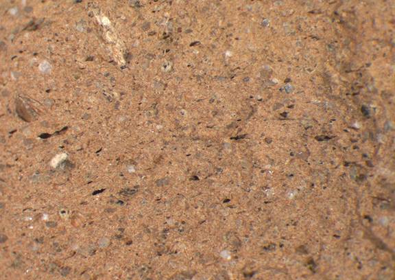 reddish yellow, fine; few medium-sized white, some medium-sized brown inclusions |