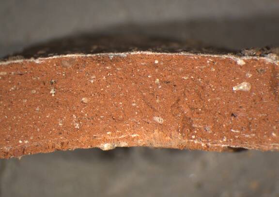 Pinkish reddish clay, compact, with a good amount of white visible inclusions of small or medium size |