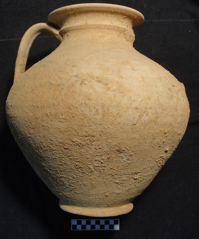 colour light red, texture fine and compact, numerous small and few large inclusions: white, yellowish white, red, voids, mica |
