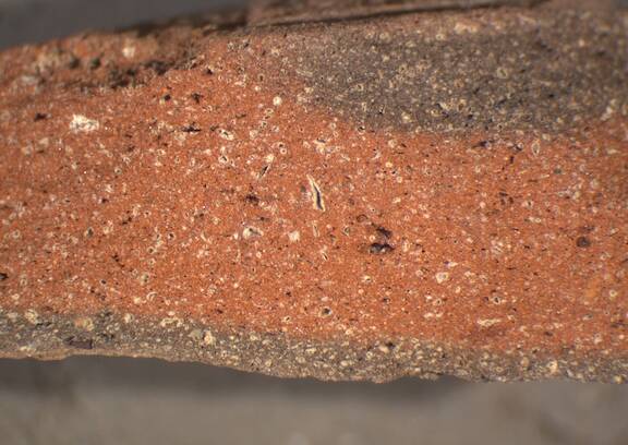 dark reddish grey 2.5 YR 4/1, core light red 10 R 6/8 |