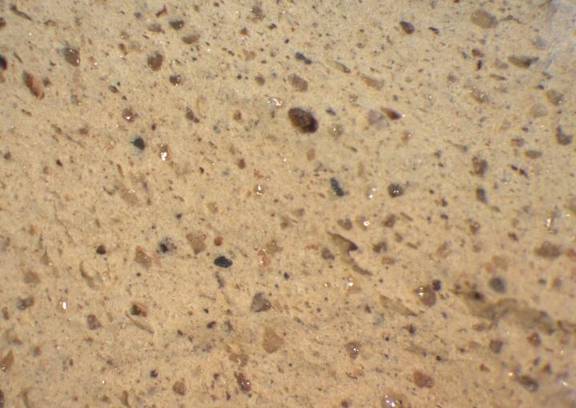 colour greenish white, core very pale red, texture middle fine, numerous small and few large inclusions: reddish, white, grey, voids |