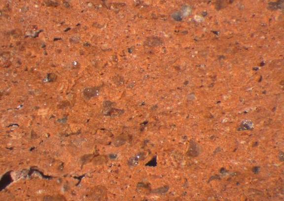 colour light red, textur middle fine and compact, small and few large inclusions: reddish, grey |