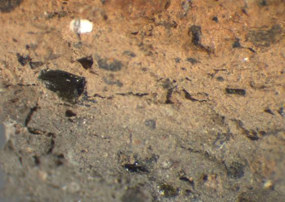 frequent, angular, spherical, rusty brown, 0.2-0.4 |