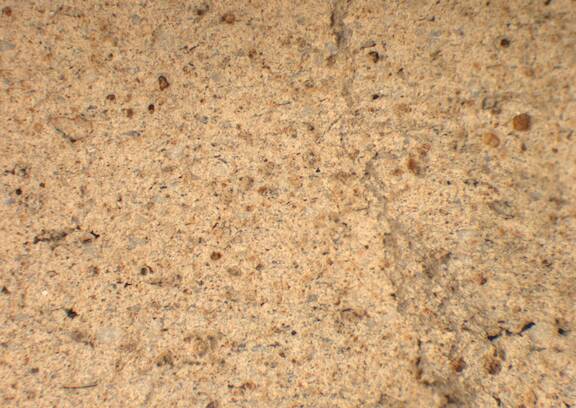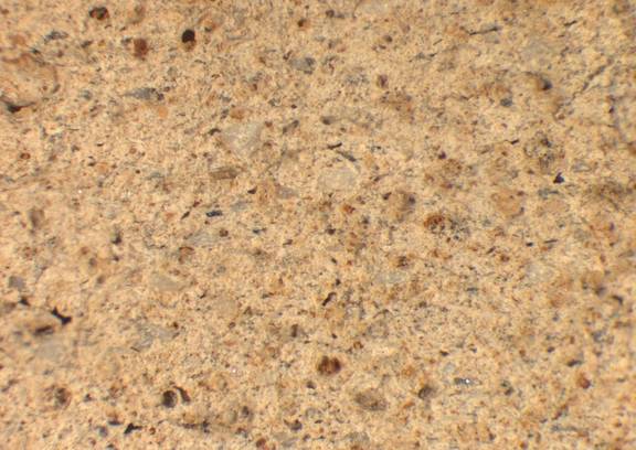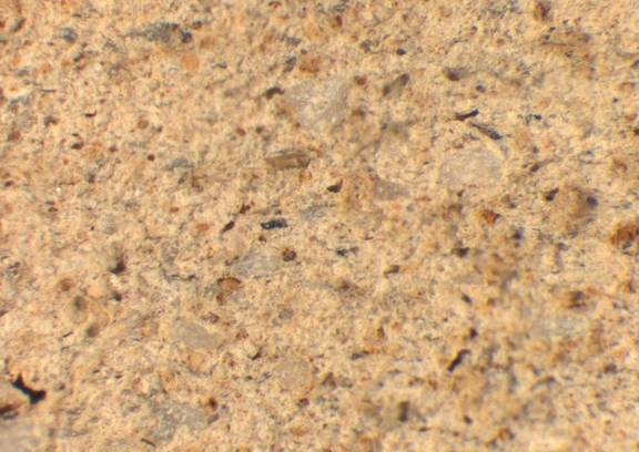 very pale brown, granular; some fine to mid-sized reddish brown particles |