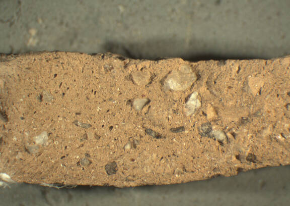 colour light brown, texture fine and compact, numerous fine inclusions: red, white, grey, mica |