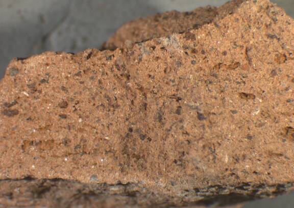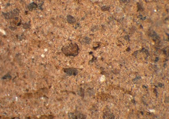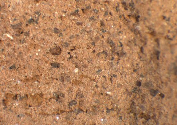 light reddish brown to reddish yellow, granular; some small tol mid-sized white and dark inclusions |