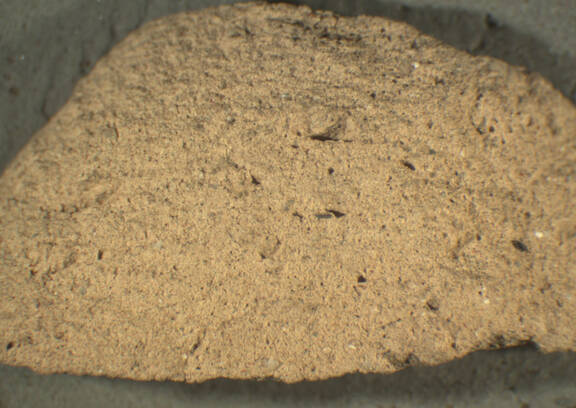 colour very pale brown, texture fine and compact, numerous fine, infrequent large inclusions: red, grey |