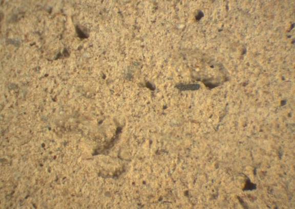 infrequent, well rounded, spherical - subspherical, black, 0.08-0.12 |