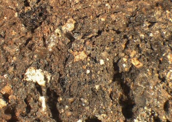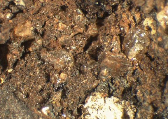 infrequent, rounded - subrounded, very spherical - subspherical, elongate - very elongate, red, reddish brown, 0.04-0.6 |