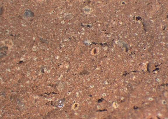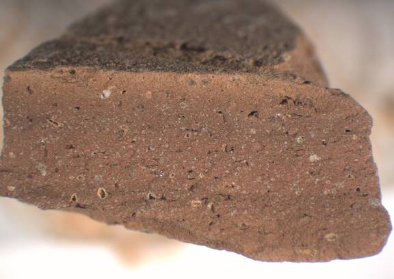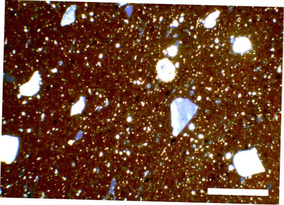 Brown colour clay with a good amount of visible and small inclusions of white colour |