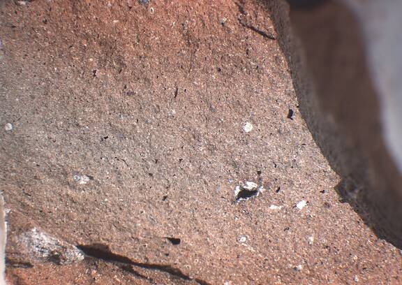sporadic, rounded; subrounded, spherical; elongate, red, 0.08-0.20 |