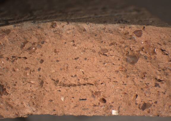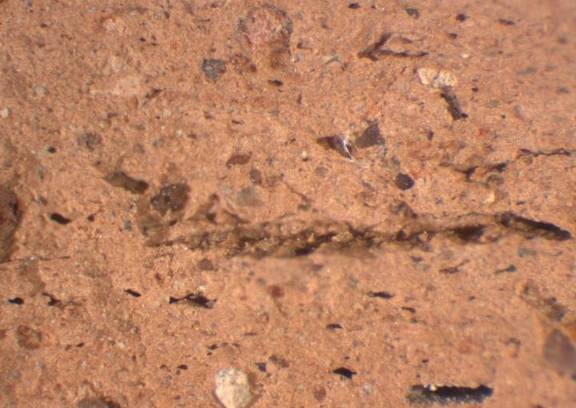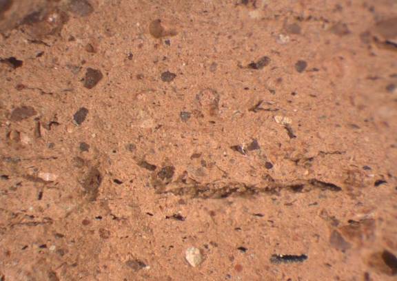 colour light red, texture fine and compact, numerous small and few large inclusions |