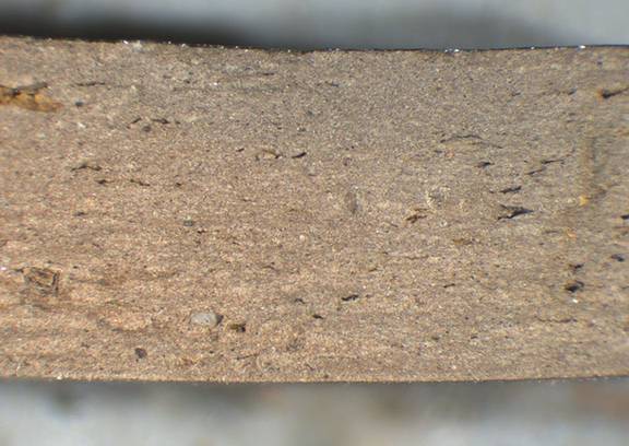 core: reddish yellow, exterior: reddish brown, fine; some fine white inclusions |