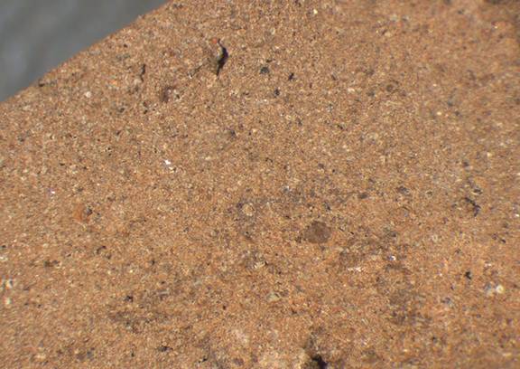 reddish yellow, granular; some fine white and dark inclusions, mica |