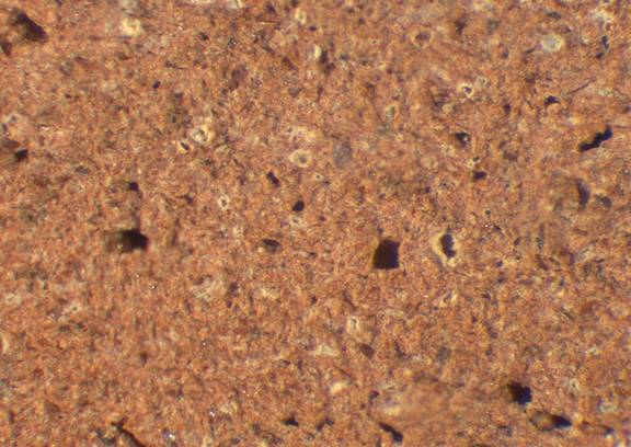 infrequent, angular, spherical, reddish brown, 0.04-0.12 |