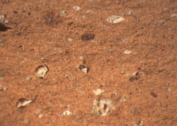 Pinkish-brown clay with visible inclusions of white colour, low diffused and of small-medium size |