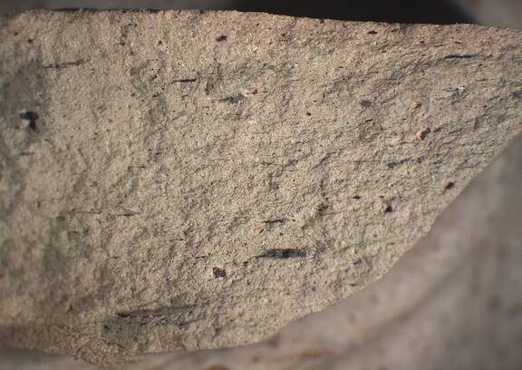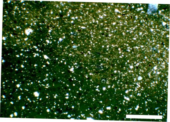 Greenish-light grey clay, hard, compact, very fine and depurated with visible voids of small and medium size but no visible inclusions |