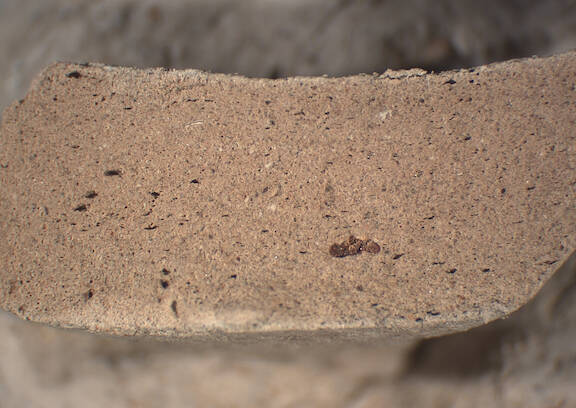 Beige-pinkish clay, very fine and depurated with no visible inclusions except for one singular elongate and reddish inclution of medium/big size |