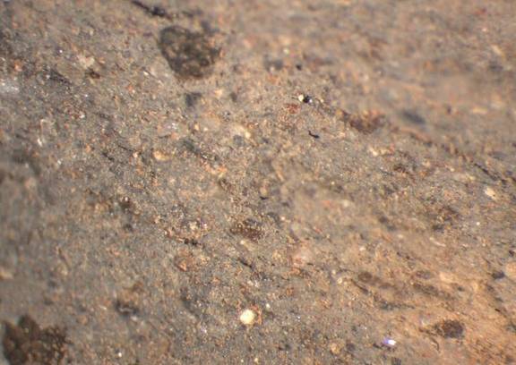 gray, irregular fracture, some fine white and large dark inclusions |