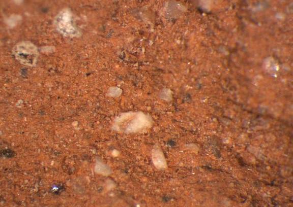 infrequent, well rounded, spherical - subspherical, white, 0.1-0.2 |