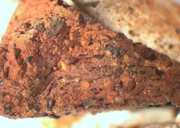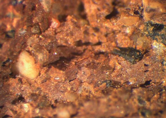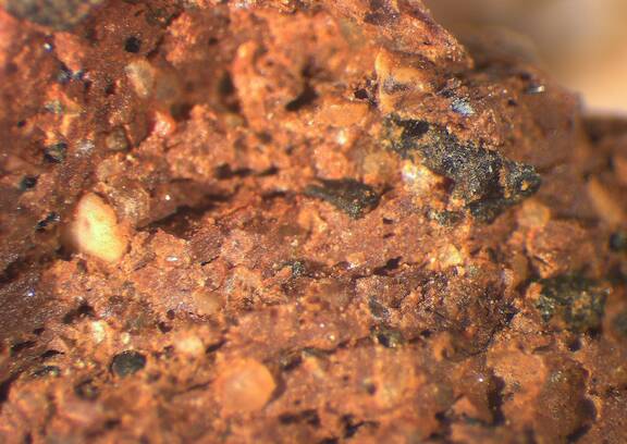 frequent, rounded, reddish brown;reddish brown, 0.2-0.3 |