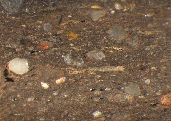 infrequent, subrounded, subspherical, rust coloured, 0.12-0.6 |