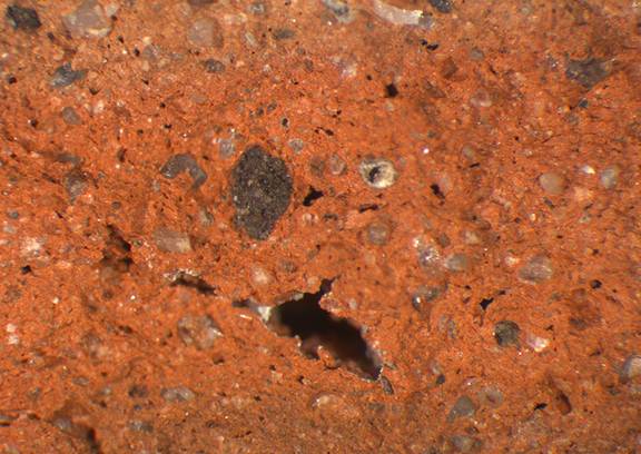 reddish yellow, granular; many fine white and dark inclusions |