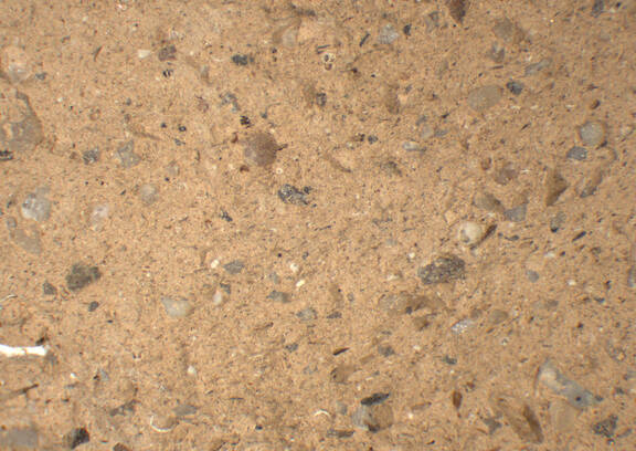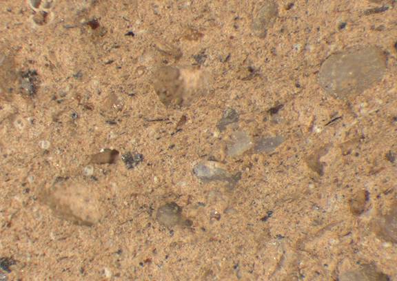 | visual examination of fresh break | very light brown, fine; some large quartz particles, some large gray inclusions |