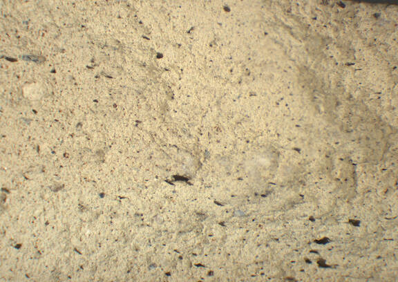pale yellow, granular; some large white and brown inclusions |