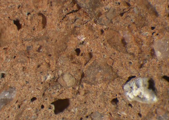 infrequent, very angular, spherical, rusty brown;rusty brown, 0.2-0.8 |