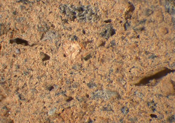 pink, irregular; gray, brown, red and few white inclusions |