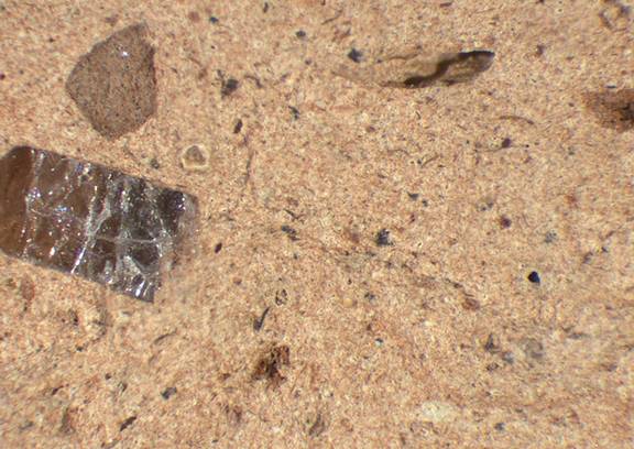 frequent, angular, spherical - subelongate, light brown, 0.4-1.6 |