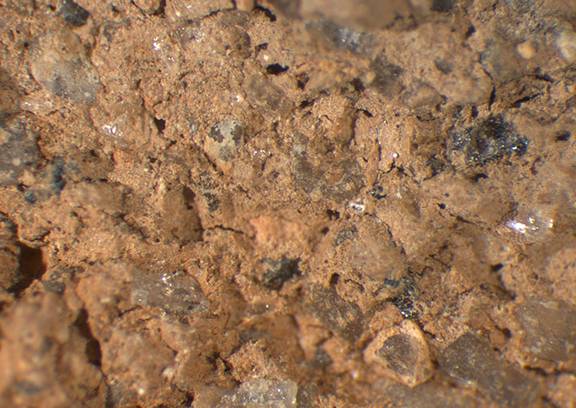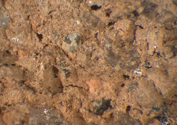 infrequent, angular, spherical, rusty brown, 0.2-0.8 |