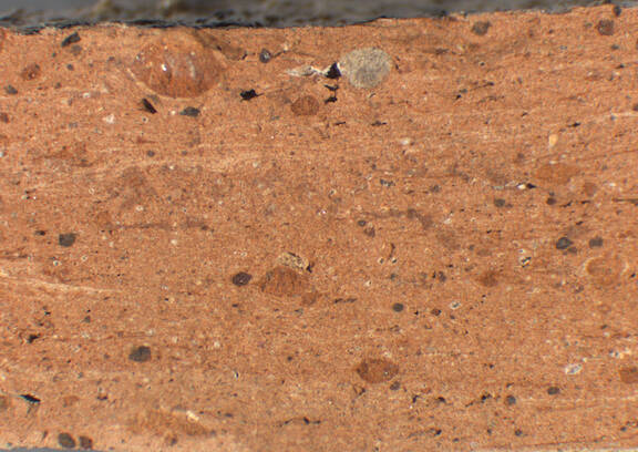 very frequent, well rounded, spherical, light red, 0.25-1 |