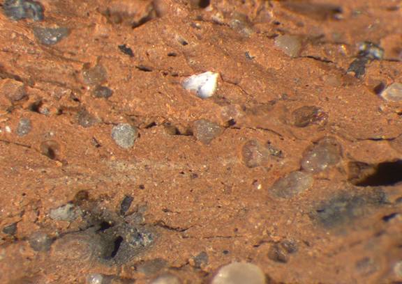 infrequent, subrounded, subspherical, rusty brown, 0.3-1.2 |