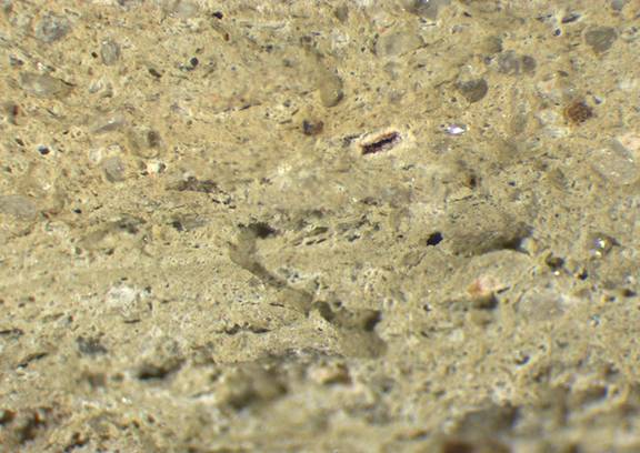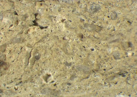 pale yellow, granular; some fine white and yellowish red inclusions, mica |