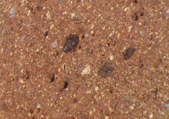 yellowish red, granular; fine white and gray inclusions |