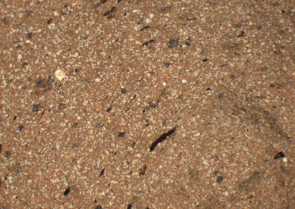 riddled with, well rounded, spherical, white, 0.04-0.08 |