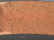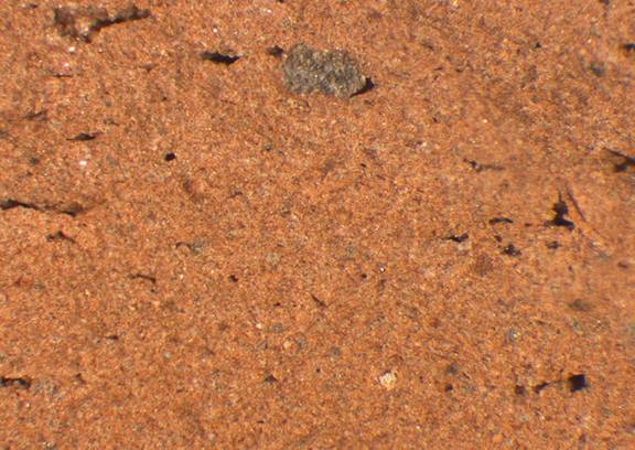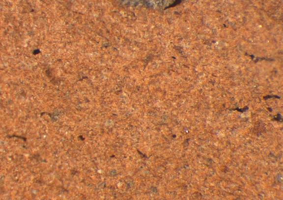 yellowish red, granular; some fine to large dark gray inclusions |