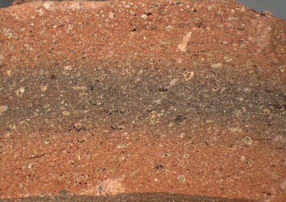 reddish yellow, granular; core: grey; few fine brown inclusions |