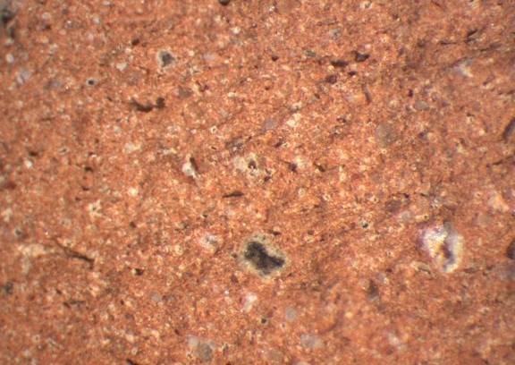 Pinkish-red clay with a good amount of visible inclusions of white colour and of small-medium size and a singular big and red one |